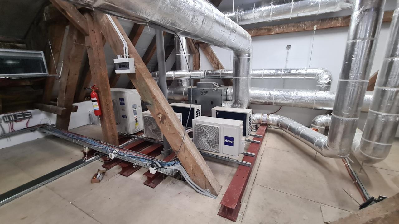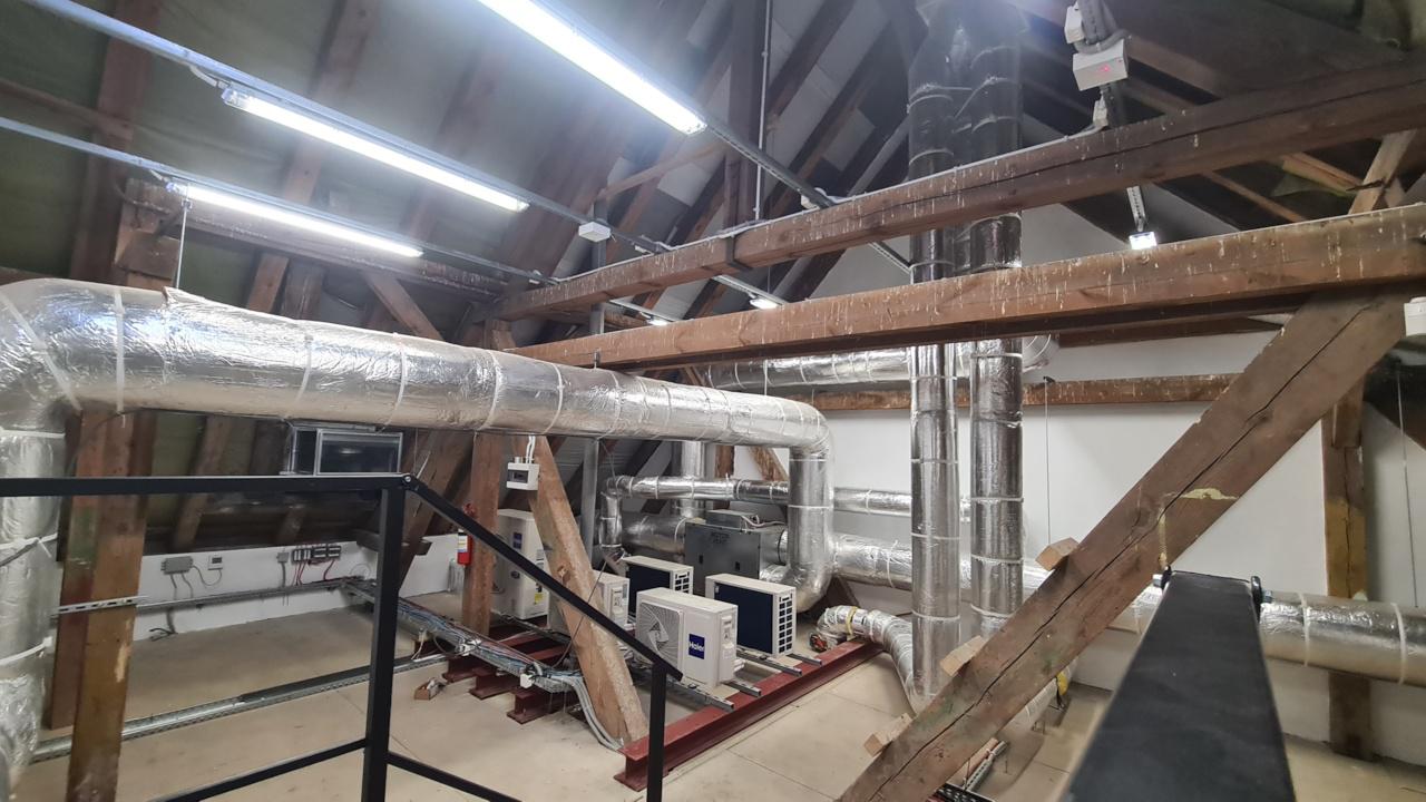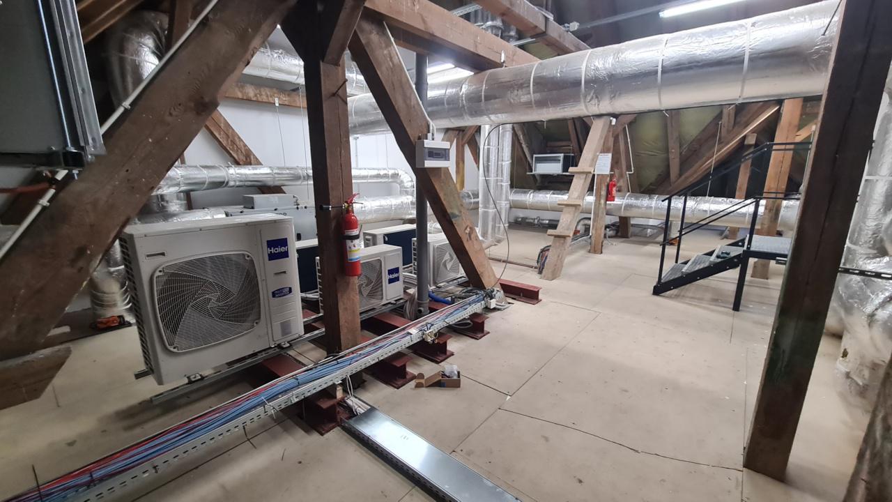 Kompleksowe wykonanie: wentylacja z odzyskiem (rekuperacja), instalacja przewietrzenia poddasza technicznego, klimatyzacja serwerowni, klimatyzacja pomieszczeń ogólnodostępnych, automatyka sterująca klimatyzacją i wentylacją, komunikacja urządzeń z BMS, praca naprzemienna w serwerowniach